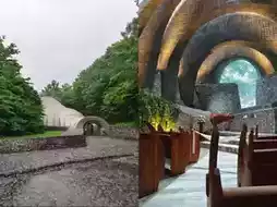 Gazing at the Stone Church standing in the quiet forest feels like witnessing a masterpiece of nature. The architecture seamlessly blends stone, light, water, greenery, and trees, with its distinctive overlapping stone-and-glass arches.
