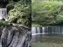 The waterfall has a drop of about 3 meters and a width of 70–100 meters. It is formed by spring water from Mount Asama gently flowing down the rock face, resembling white silk ribbons. The water is crystal clear.