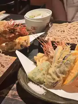 🍜 Must Try:Cold Soba Noodles with 2 big prawns and vegetable tempura! A refreshing and tasty dish!