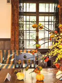 The flower arrangement artist Kariyazaki was holding an exhibition there, and the Halloween-themed display at Suikyu-so, arranged by Kariyazaki, was absolutely stunning.