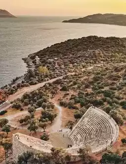 As Kas's most significant historical site, this seaside ancient theater is perched on a hillside at the town's edge, overlooking the vast Mediterranean. It's one of Turkey's best-preserved ancient theaters. Originally built during the Greek period, it was later expanded and renovated during Roman times.