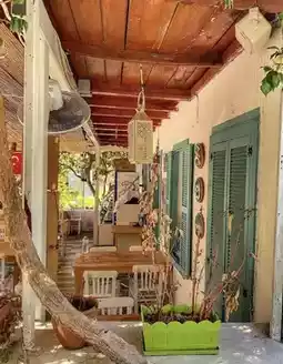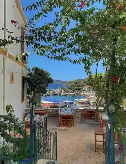 A colorful fairytale town just 2 kilometers from a Greek island, where the Aegean Sea is always in sight.