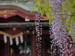 • The shrine grounds feature a 400-year-old wisteria trellis, a large vermilion torii gate, and a path lined with shopping streets, allowing you to enjoy the changing faces of the seasons .