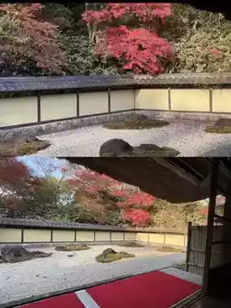 the expansive garden offers seasonal scenery, including cherry blossoms and autumn leaves.