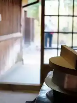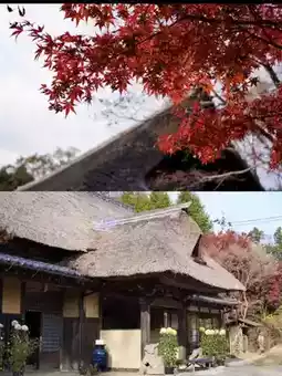 An old thatched-roof house that was relocated from the former home of Kitaoji Rosanjin