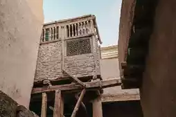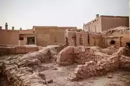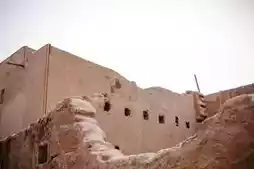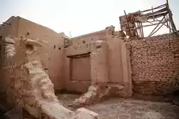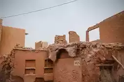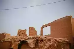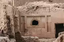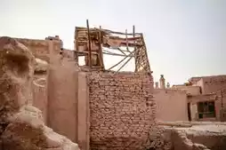 Decaying wood and tamarisk branches prop up precarious buildings,