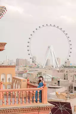 🧡 Pose by railing with 🎡 Ferris wheel on your left