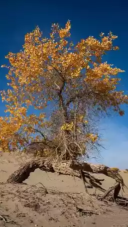 Kashgar, located to the east of the Taklamakan Desert, is a land of undulating sand dunes that stretch as far as the eye can see. Amidst this vast sandy sea, the resilient poplar trees stand tall like unwavering warriors, thriving in the barren and desolate landscape. During autumn, these trees burst into vibrant colors, showcasing their exuberant vitality and inspiring awe. As a result, the poplar trees have become a symbol of strong spiritual power, drawing countless visitors from afar to witness and touch this miracle of life.