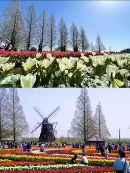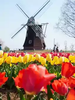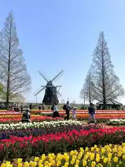 The park opens at 9am, so I went there just in time, but there were already a lot of people there. It was impossible to take a photo without people in it. 😆 Central Parking Lot B seems to be open all day. You can use it outside of park hours, so if you want to take a photo without people in it, it's better to go outside of hours. Pets are not allowed in Akebonoyama Agricultural Park. It seems that the park is okay. There were lots of photo spots in the park, including picture frames, doors, chairs, and face-in panels. You can take great photos among the tulips, but you have to line up. There were cherry blossoms in front of the windmill, so this spot was also popular. #tulips #akebonoyamaagriculturalpark #kashiwa #chiba #windmill #photospot #nopets #springzeroyentrip