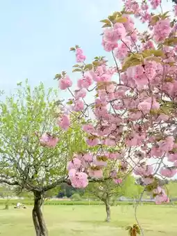 The double cherry blossoms blooming on the side road of the tulip fields were lovely🌸