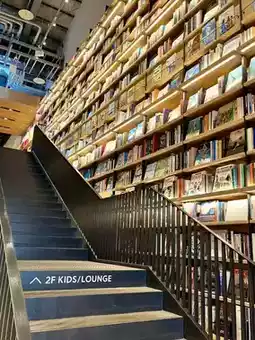 The atmosphere is especially family-friendly, with many parents and children spending time together reading or exploring. There’s even a small reading corner just for kids — cozy, colorful, and full of charm.