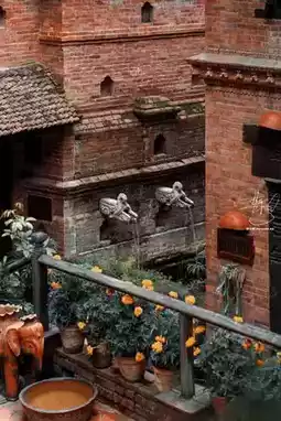 This hotel is known as The Living Museum, a true "living museum"—many of its wooden carvings and stone pillars are original artifacts collected from the Kathmandu Valley, restored and placed anew in this courtyard. It's not imitation; it's rebirth.