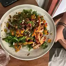 The roasted hummus bowl was good. Nothing crazy but very nourishing.