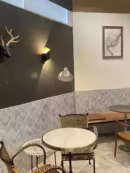 It is a cafe where you can sit and work comfortably with a large area.