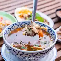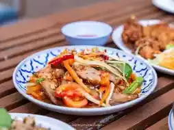 This place combines a variety of Isan dishes with spicy flavors. The must-order dishes are Som Tum Tiang Non, Moo Pla Ra, which are full-flavored and well-rounded, not too salty. Another must-try dish is Tam Pu Pla Ra, which is not too salty. The restaurant's fried food is also delicious, such as fried chicken wings, which you must order again.