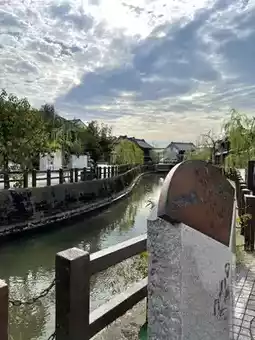 A soy sauce shop that has been around since the Edo period, and a coffee shop located right next to the bridge, remodeled from an old house.