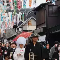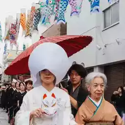 In the evening, as I was heading back, I passed through the shopping street and unexpectedly stumbled upon a fox wedding procession. In Japanese folklore, sunshowers are said to be the time when foxes secretly hold their weddings, known as "Kitsune no Yomeiri." Although there was no sunshower today, I happened upon a fantastical parade under streets adorned with carp streamers 🎏.