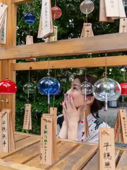 The "Enmusubi Wind Chimes" event is being held at Kawagoe Hikawa Shrine from Saturday, June 28th to Monday, September 15th, 2025 (national holiday). 🎐 The shrine grounds are filled with approximately 2,000 colorful Edo-style wind chimes. 🎐 The glass wind chimes are handmade by artisans, so each one is unique in color, shape, and tone. ✨✨ You can hang wooden strips of paper with your wishes written on them on them. Strips of paper are available for 300 yen each at the shrine office on the left after entering through the main torii gate. During the event, we also recommend the "Glowing River" from around 6:30 PM to 8:00 PM! The fourth photo was taken during the day. This river glows at night, so please go and see it for yourself and let me know what you think! ♬