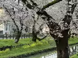 During cherry blossom season, you can walk behind the shrine for a beautiful view of the cherry blossoms and rapeseed blossoms along the river!