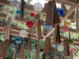 Colorful wind chimes swayed in the wind within the shrine grounds, their sound, along with the summer air, lingering in my memory.