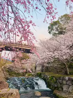 Tucked away in the mountains, Tachibana Park stretches along a gentle stream, complete with charming little stone bridges, babbling brooks, and tiny waterfalls. 🏞️🌸
