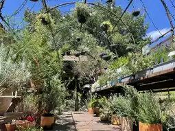 The first thing you'll notice upon entering is a "mini-desert"-like area filled with cacti and succulents. Beyond that, olive trees and herbs sway in the breeze. Take a break in the cafe space, browse the pots and gardening tools, and daydream about what you'll grow next weekend.