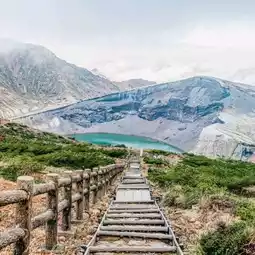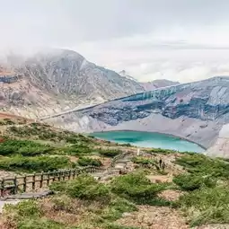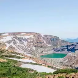 Okama Crater (蔵王の御釜) is a volcanic crater with a beautiful emerald lake hidden within it.
