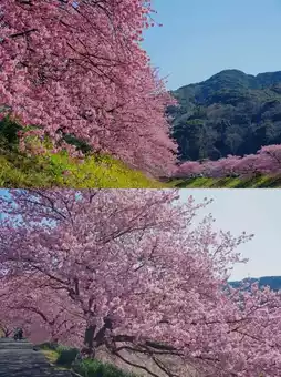 Enjoy the charm of Kawazu cherry blossoms in early spring! Kawazu cherry blossoms are in full bloom from late February to March. Let's enjoy this famous cherry blossom spot that attracts many tourists every year.