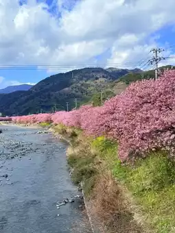 Swaying pink flowers spread all over the place, and some branches had new buds, but this did not affect the beauty of the cherry blossoms in full bloom. If the weather is good, you can enjoy them for another week. If you want to see the Kawazu cherry blossoms, hurry up! The Kawazu cherry blossoms are almost over. If you miss them, you will have to wait until the end of March or early April!