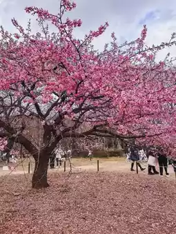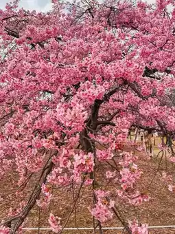 • Kawazu-zakura trees are a unique variety of cherry blossoms known for their deep pink color and long blooming period (about a month).