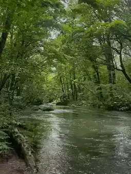 An emerald-green stream flowing from Lake Towada, with a 14 km hiking trail crossing 30+ waterfalls! Hop on mossy rocks and catch rainbows over "Ashura Falls"—your phone 📱 can’t capture even 10% of its beauty!