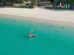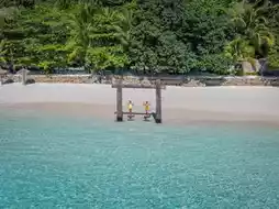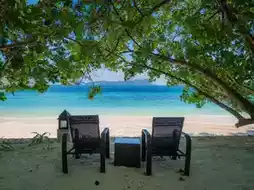 In the afternoon, you can relax on the beach, enjoying the gentle sea breeze and the tranquility. There are hammocks for you to lie back on. There's a cafe on the island where you can order a cool drink and enjoy sipping on it while gazing out at the sea. It feels like you've been transported to a place with no signal, no rush, just you, the sea, and the sound of the waves.