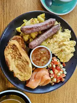 The toast was too dry and flavorless to be considered French toast but too fluffy and eggy to be considered plain toast.