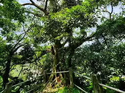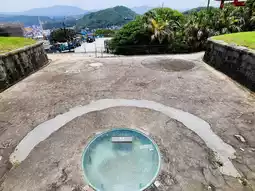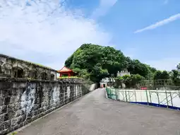 Located on the highlands of the western shore of Keelung Harbor, Baimei Weng Fort forms a strategic defense point together with Heping Island on the eastern shore, guarding the entrance to Keelung Harbor. The fort area features a long, linear layout facing the sea. While the cannons are no longer present, visitors can still see the remains of four gun emplacements and parapet walls. On the right side, the observation deck can be accessed via stone steps next to the pavilion, offering a stunning view of the sea and sky.