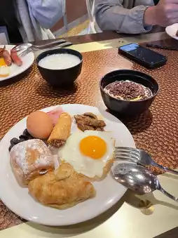 Dinner on the first day was at the Vista Restaurant on the 3rd floor, divided into two seatings: 5 PM and 7 PM. We were in the 7 PM seating. Once seated, it’s recommended to order immediately as the ordering and serving process is quite slow—we didn’t start eating until almost 8 PM. During dinner, photographers came to take pictures of us, but if you want the photos, you’ll need to pay extra. You can purchase them directly using your room card at machines on the 5th floor.