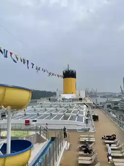 There are plenty of activities onboard, though we missed many due to insufficient planning. It’s recommended to arrange your schedule in advance. We heard the theater performances are quite good. On sunny days, you can also head to the top deck to sunbathe, where there’s a swimming pool and water slide.