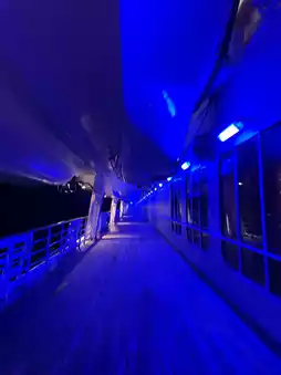 We started queuing at 12 PM, and after a long wait and various customs checks, we finally boarded the ship and found our room around 2 PM. Once onboard, we completed the online safety drill by watching the video provided in the app and then heading to the deck on the 4th floor to find staff members to finalize the drill. If you don’t do the online drill, you can join the physical drill by waiting for the broadcast and bringing the life jacket provided in your room to the designated location.