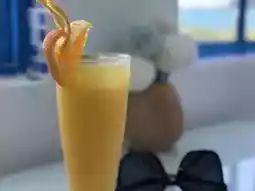 🥭 The window seats in the restaurant are even better. The blue window frame is paired with a glass of special juice. It is beautiful no matter how you take a photo, as if you are instantly in the Mediterranean.