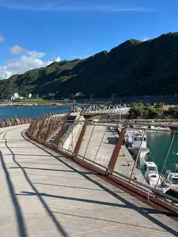 🏞️ Wanghai Lane Fishing Harbor is located in Zhongzheng District, Keelung City. Formerly known as "Huanfan," it is the easternmost fishing harbor in Keelung City, constructed in 1962. The harbor was created by blasting and excavating the sandstone reef crevices along the coast. Classified as a third-tier fishing harbor, it has a berthing area of approximately 0.74 hectares and a dock length of 380 meters. It mainly accommodates fishing boats under 50 tons, focusing on coastal and nearshore fishing activities. During summer, squid are often caught using stick-held dip nets, while in winter, longline fishing is predominant. The catch is typically auctioned at Keelung's Kanziding Fish Market or purchased by local restaurants.