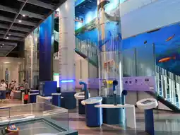 Inside, the exhibits are both visually stunning and highly interactive. You can walk through underwater tunnels, explore ship models, and learn about marine conservation through hands-on displays and multimedia experiences. The aquarium zones, filled with colorful fish and coral, are a favorite among families, while the “Deep Sea Theater” offers an immersive look into the mysteries that lie beneath the waves. Each section flows seamlessly, making it easy to spend hours wandering between curiosity and awe.
