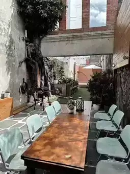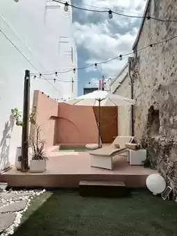 Step outside to find a courtyard, swimming pool, and barbecue area