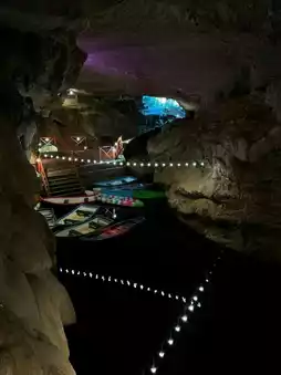 #summervacay Alright, if you’re doing the Thakhek Loop, the caves are the real MVPs. Like, seriously, Laos went all out with the underground magic here. The star of the show? Kong Lor Cave. This place is MASSIVE. You hop into a tiny boat, slap on a headlamp, and float through pitch-black darkness for like 7km. Total bat-cave vibes.