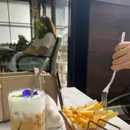 A café located in the city but lush and green like a forest. Once inside, you feel relaxed and at ease. Beautiful garden, meeting rooms, drinks, food, and a variety of cakes to choose from. There are both air-conditioned rooms and garden seating. In the garden, there is a pond, waterfall, and mist. The food is delicious. Photography enthusiasts will not miss the many beautiful spots. Prices start at 100 THB and up.