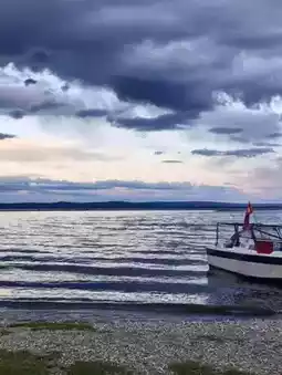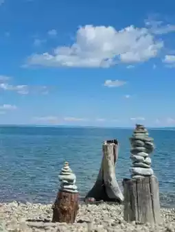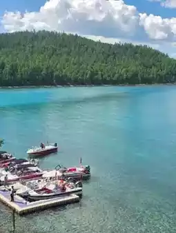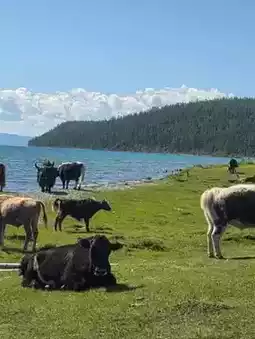Standing by the lakeshore, you'll be greeted by endless waves stretching out before you and a refreshing breeze that makes you feel as if you've arrived at the seaside. The water is crystal clear, offering a cool and invigorating sensation when you dip your feet in. Surrounding mountains and forests add to the picturesque scenery, making it even more captivating.