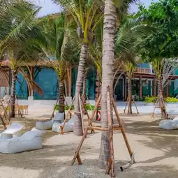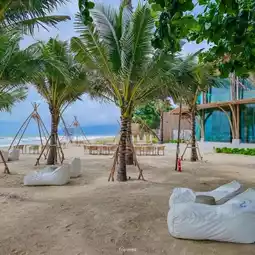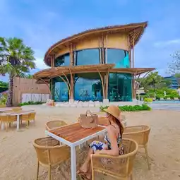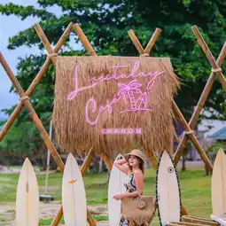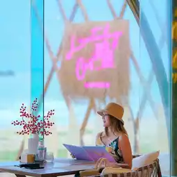 Sea view The seating area is both inside the shop with air conditioning. The 2nd floor is an outdoor atmosphere with sea breezes. Or if anyone wants to sit in the seaside area, there are bean bags to sit and chill while enjoying the sea view.