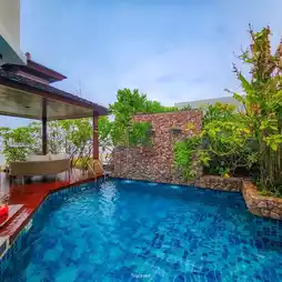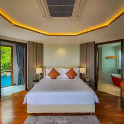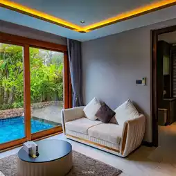 The rooms are villas. There are both poolside rooms that can be connected to the pool from the bedroom balcony. Or choose to stay in a room on the upper floor with a view of the pool. And a 1-2 bedroom Poolvilla that can see the sea view from the front of the room.