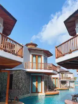 👉🏻Villa-style accommodation surrounded by a seaside pool, with privacy. The room comes with complete facilities and a relaxation area both inside and outside. The accommodation has outdoor chairs for sitting and clearly seeing the view of the private pool and the sea.