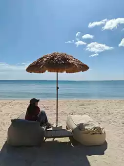 I'd say the beach here offers a peaceful, simple, beautiful, and relaxing atmosphere, perfect for healing. Honestly, even during the rainy season, it's still beautiful.