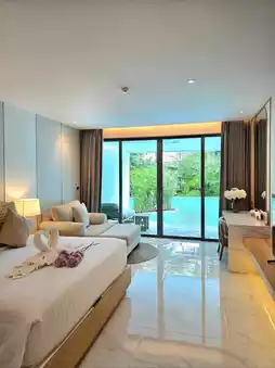 The rooms are luxurious and comfortable, with automatic curtains controlled by a remote. The bathroom has a Japanese-style toilet that's warm and comfortable, and even has a bidet system. The staff are very welcoming. You can chill on the beach during the day or at night. Everything is excellent, and the reception is excellent. I'm always happy and comfortable staying here.