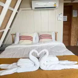 Another lovely room that can accommodate 4 people is the White House. It is complete, convenient, comfortable, has air conditioning, a bathtub, and a balcony. The room is large and very convenient. Plus, the view is awesome‼️Nicky's favorite is when she has breakfast # and there is fog flowing. Beautiful atmosphere🌟The sky color is truly beautiful unlike anywhere else💫